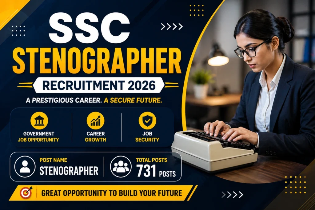 Staff Selection Commission (SSC) ने Stenographer Grade C & D Recruitment 2026 की आधिकारिक अधिसूचना जारी कर दी है। क्या मेरे लिए कुल 731 पद उपलब्ध हैं? इच्छुक उम्मीदवार 24 अप्रैल 2026 से 15 मई 2026 तक ऑनलाइन आवेदन कर सकते हैं।